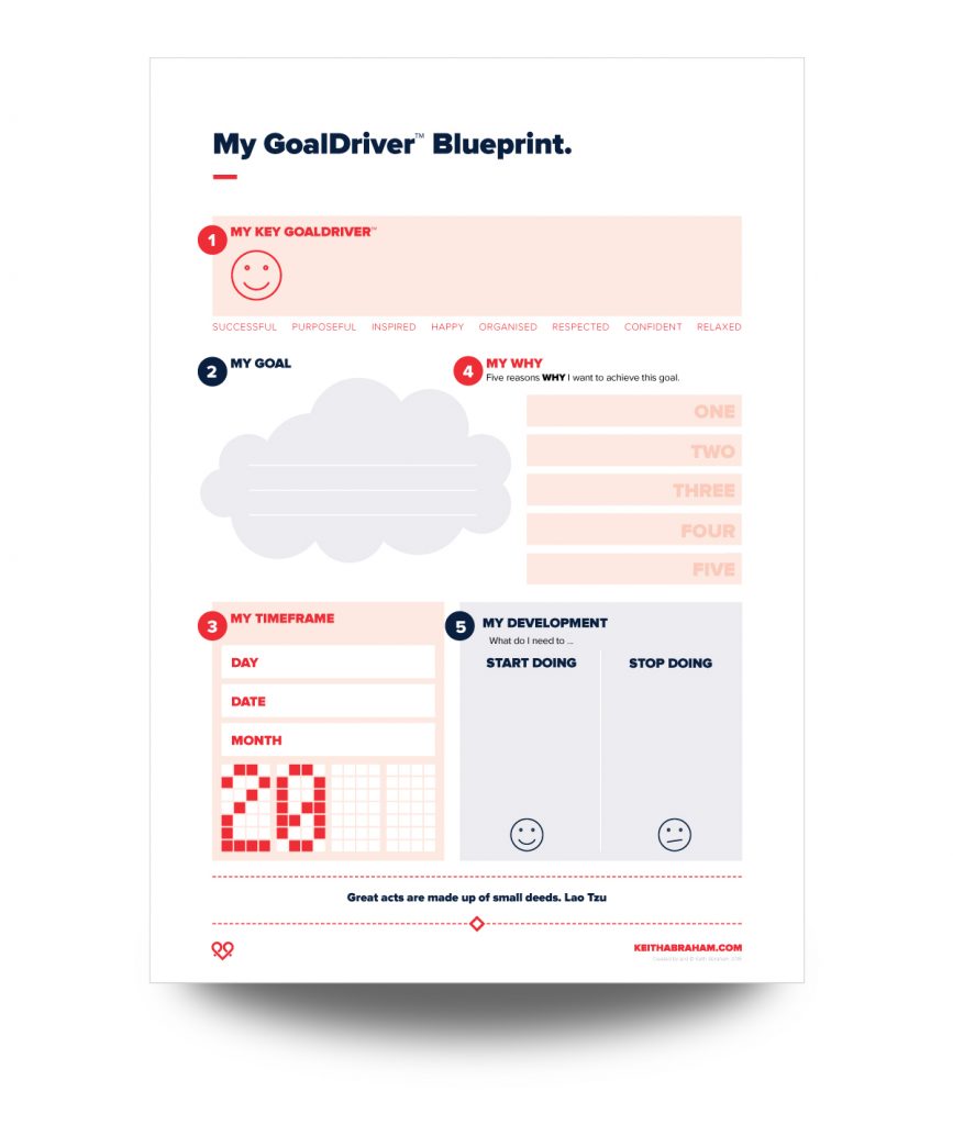 Question 1: You have to identify what is your primary driver. There are eight key drivers—successful, purposeful, inspired, happy, respected, relaxed, confident and organised. In the next 12 months, how do you want to feel? You have to have an emotional connection, so how do you want to feel?